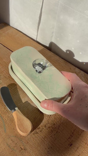 Mine is made out of porcelain and adorned with delicate turquoise lace. And to top it off, the knob is a super glam and sparkly!